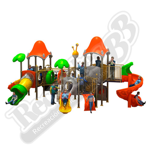 Este complejo recreativo está diseñado para ofrecer una experiencia multiactiva de alto impacto visual y seguridad. Su estructura combina elementos de exploración vertical, destreza física y deslizamiento, todo bajo un concepto temático vibrante.