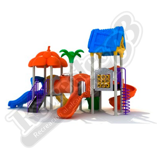 Soportado por una estructura de postes de acero galvanizado, este juego garantiza una durabilidad excepcional en exteriores, siendo la pieza central perfecta para parques públicos, clubes de playa o desarrollos residenciales que buscan un concepto temático diferenciado.